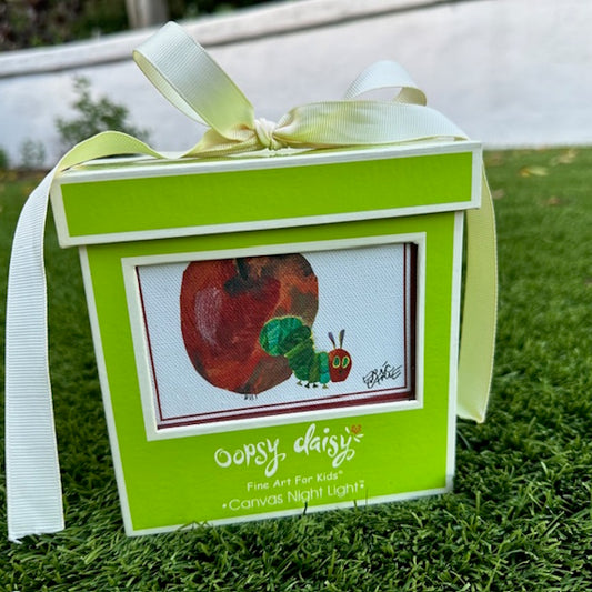 The Very Hungry Caterpillar and Apple Canvas Nightlight, Eric Carle Art
