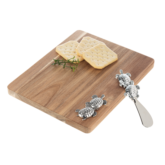 Silver Sea Turtles Wood Cutting Board and Spreader Gift Set