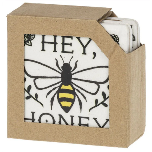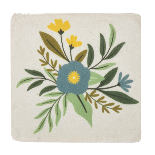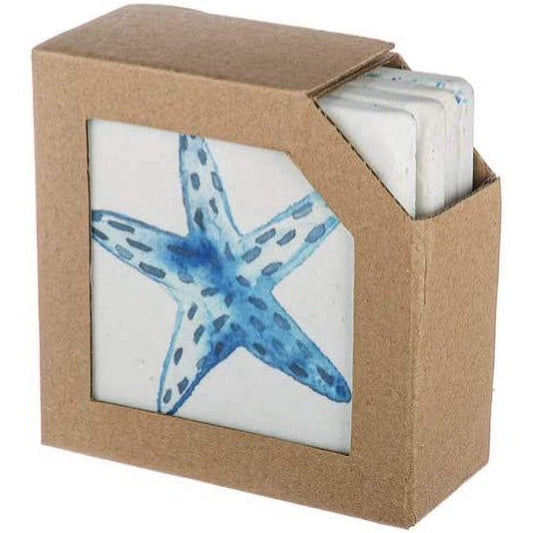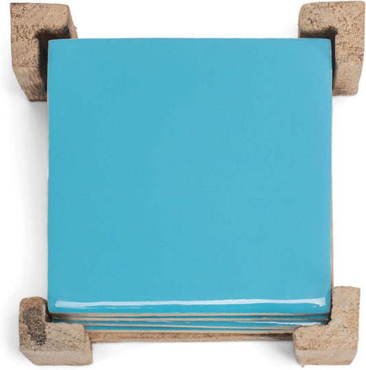 Powder Blue Glazed Wood Coasters with Holder, Set of 4