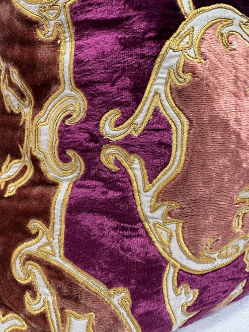 Renaissance Pattern Ebroidered Terracotta/Burgundy Velvet Throw Pillow