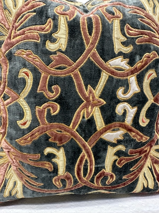 Florence Pattern Khaki/Terracotta Embroidered Velvet Throw Pillow
