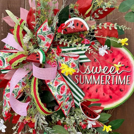 Watermelon Wreath-Hello Summer Wood Sign, Handmade