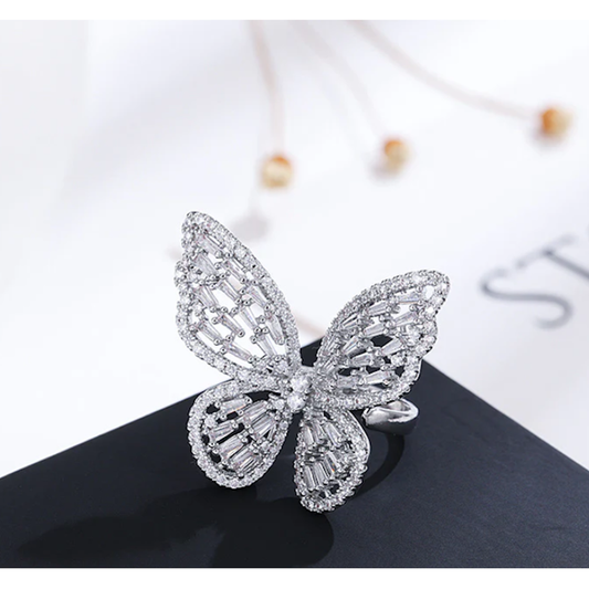 Butterfly Ring-Cubic Zirconia, Silver Purple
