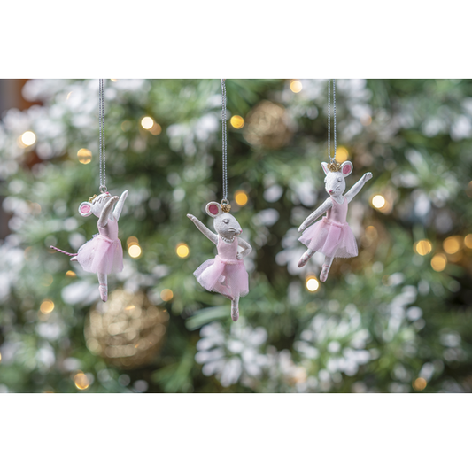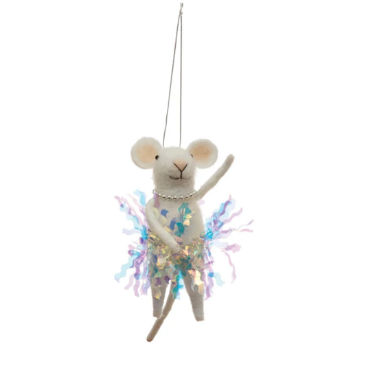Mouse Ballerina in Tinsel Skirt w/Pearl Necklace Ornament-Assorted, each sold seperately