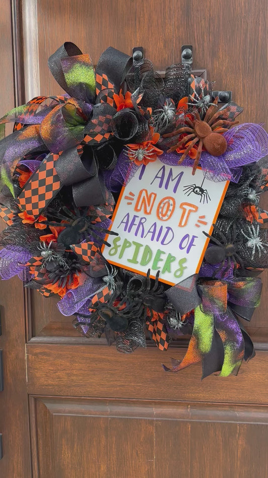 "I Am NOT Afraid of Spiders" Halloween Wreath, Handmade/Custom