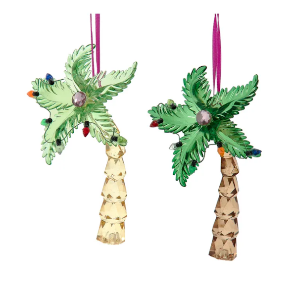 - These Acrylic Palm Tree Ornaments are delightful and tropical-themed holiday decorations that bring a touch of paradise to your Christmas tree or seasonal decor. These ornaments capture the essence of a beachy getaway and infuse your holiday setting with a relaxed and coastal vibe. Crafted from transparent acrylic material, these ornaments depict intricately detailed palm trees, complete with fronds and a sturdy trunk. The use of acrylic gives them a glass-like appearance, allowing them to catch and reflect light beautifully, creating a shimmering and captivating effect. They are perfect for hanging on your Christmas tree, adding a touch of the beach to your holiday celebrations. Additionally, they can be displayed on wreaths, garlands, or used as part of a coastal-themed centerpiece for your holiday table. Whether you're reminiscing about a favorite beach vacation, embracing a tropical holiday theme, or simply seeking a unique and charming ornament for your tree, these acrylic palm tree ornaments are a fantastic choice. They bring a slice of paradise to your Christmas decor and serve as a reminder of the relaxation and joy associated with beach destinations during the holiday season.
