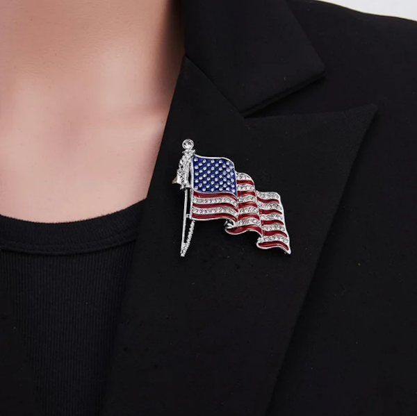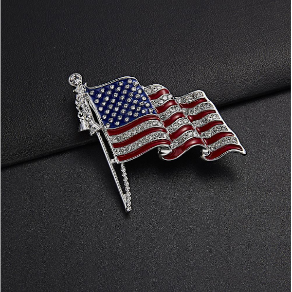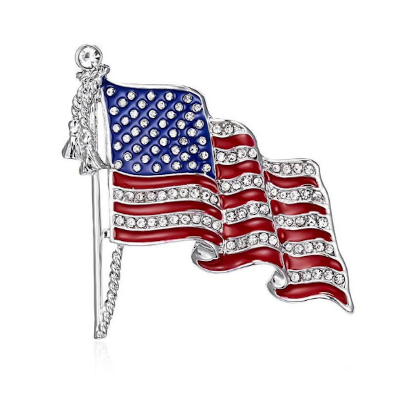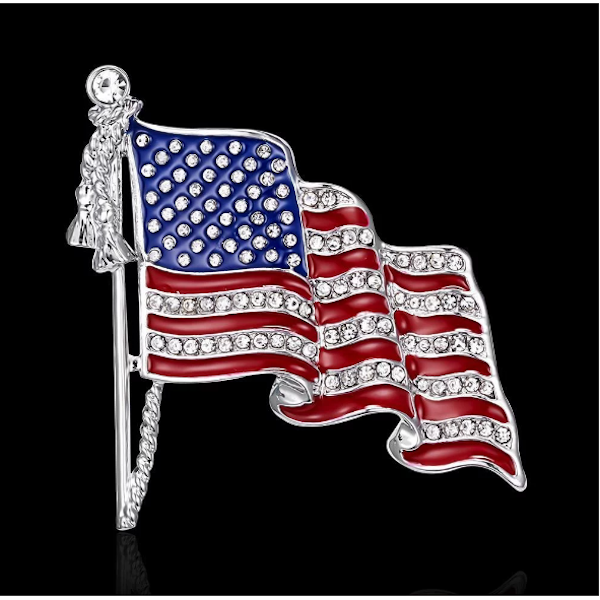 - Show your American pride and patriotism with this patriotic flag lapel pin, silver color, embellished with clear crystals