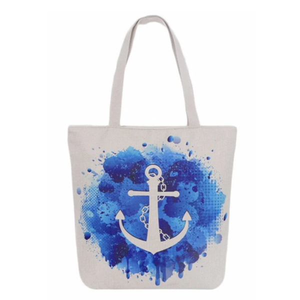 - This lined, zippered tote bag will hold all your essentials for a day nearh shades of blue create a novelty anchor pattern you will enjoy the water, whether it's at the beach or on a boat! Neutral canvas body printed wit
