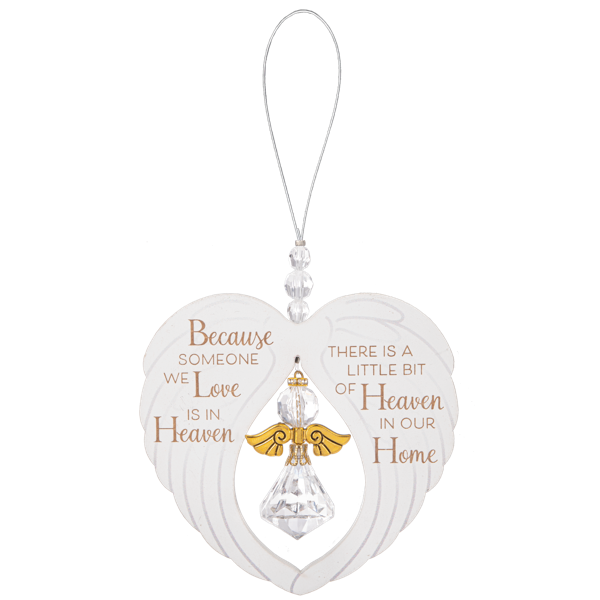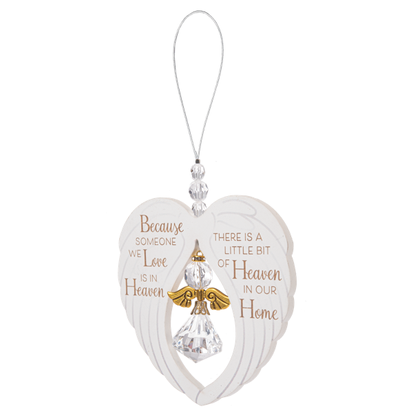 - Part of the Crystal Expressions Collection by Ganz, this special double sided ornament will hold sentimental memories of a loved one. Ornament reads "Because Someone We Love is in Heaven, There is a Little Bit of Heaven in Our Home"