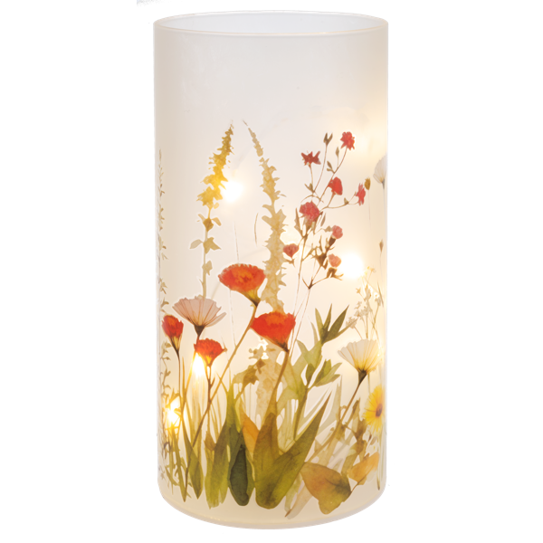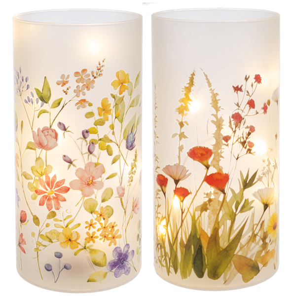 Bring a touch of spring indoors with the Bloom from Within Light Up Candle Figurine. This charming glass "candle" features delicate wildflower prints that glow warmly when lit, creating a cozy and whimsical ambiance. Battery operated and flameless, it’s perfect to display solo or nestled in your favorite candle holder for a playful burst of floral magic anytime. 2 styles to choose from, each sold separately.