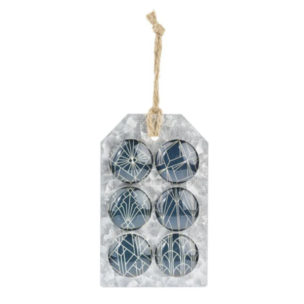 Blu Art Deco Glass Magnets, Set of 6