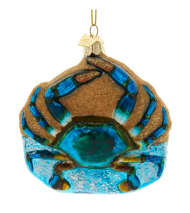 - Coastal Christmas, glass crab ornament with faux sand blended in for a fun and realistic touch.
