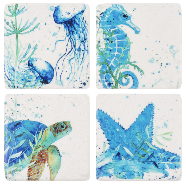 - 1 set of 4 assorted coastal sea creatures: jellyfish, seahorse, sea turtle, and starfish