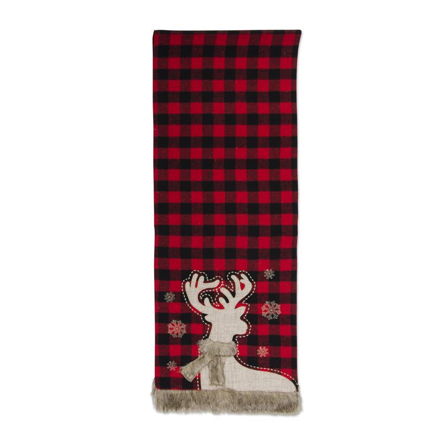 Buffalo Plaid Table Runner w/Faux Fur Trim and Embroidered Reindeer