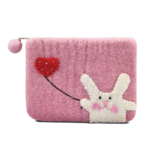 Bunny with Flying Heart Design Coin Purse-Pink