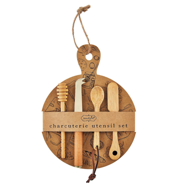 - The four piece set comes with four wood and brass finished utensils, which includes a cheese knife, a honey dipper, a spreader and a spoon-Everything you need to prepare the most beautiful charcuterie arrangement!
