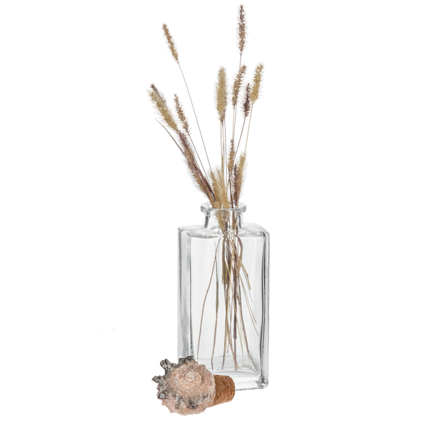 Add a touch of the beach to any room with these clear glass bottles topped with natural seashells. Use them solo for a simple coastal vibe, fill them with sand from your favorite vacation spot, or turn them into charming mini vases. Each bottle is unique and sold separately, perfect for bringing a playful splash of seaside charm to your home décor.