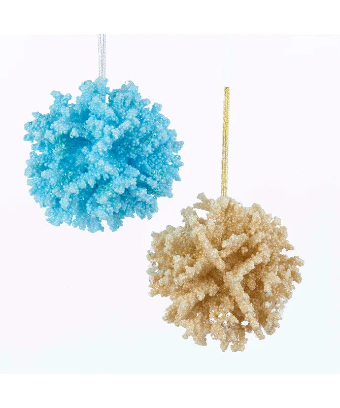 - Gorgeous Coral Ball-Blue with silver hanger or pale sandy gold with gold hanger, each sold separately