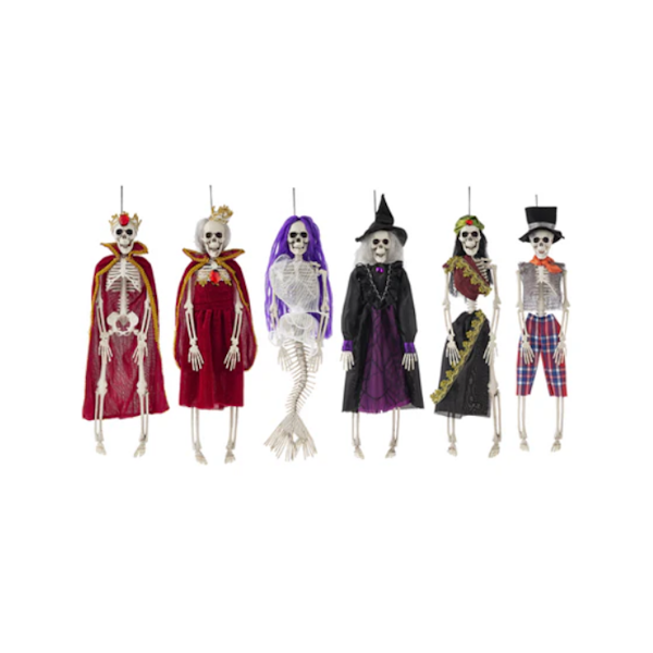 - Decorative hanging skeletons, each wearing intricate unique Halloween costumes! We even have the always popular Mermaid Skeleton! Each sold seperately