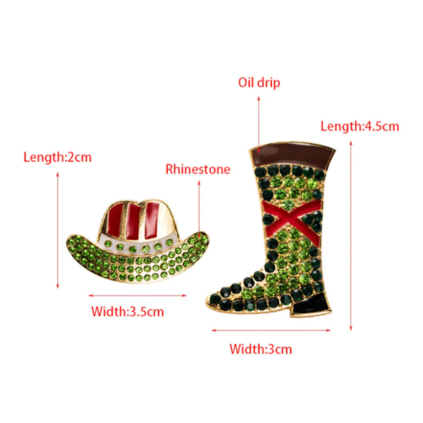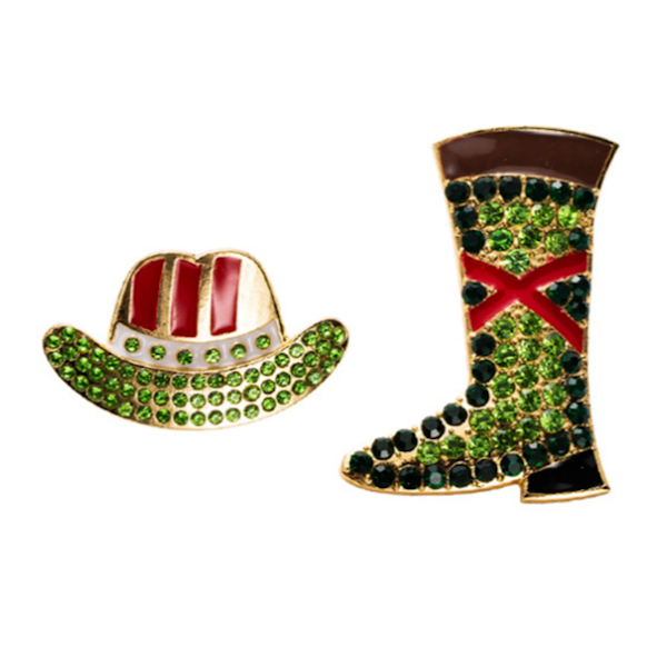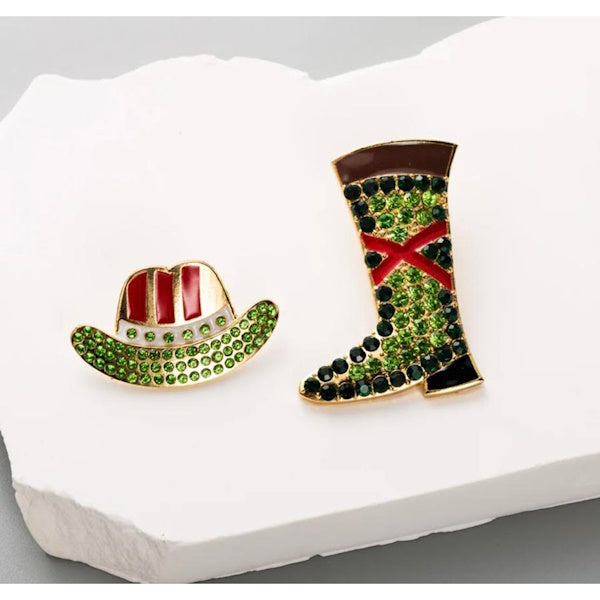 Calling all Cowgirls! Add some sparkle to your western style with these playful Cowgirl Hat & Boot Asymmetrical Rhinestone Earrings. Featuring vibrant rhinestones in gold, green, red, and black, they’re perfect for any cowgirl ready to shout "Yeehaw!" and shine bright at every rodeo or country gathering.