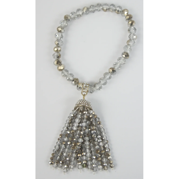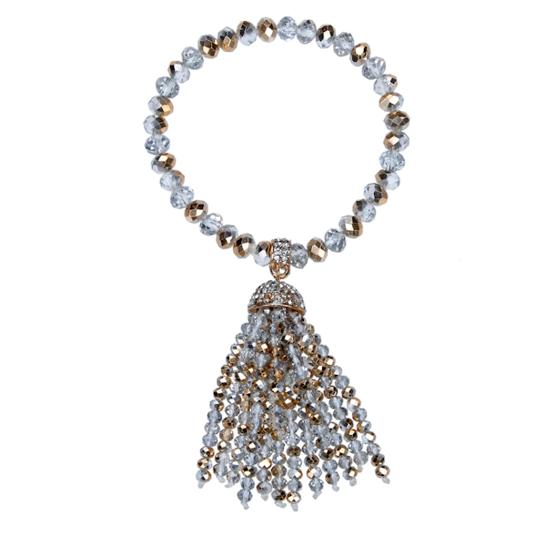 Crystal Tassel Stretch Bracelet-Metallic Silver/Champagne