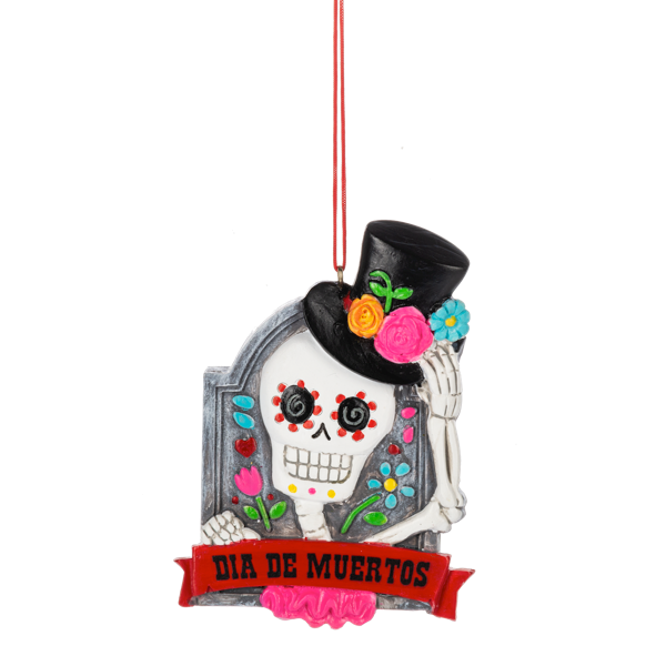This hand-painted wooden Day of the Dead ornament celebrates the traditional Mexican holiday, Dia de Muertos. The vibrant colors and intricate designs pay homage to loved ones who have passed and add a unique touch to any holiday decor.
