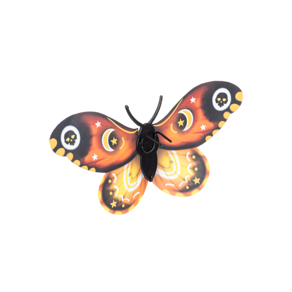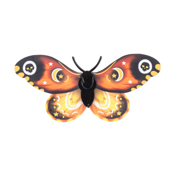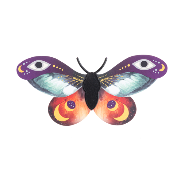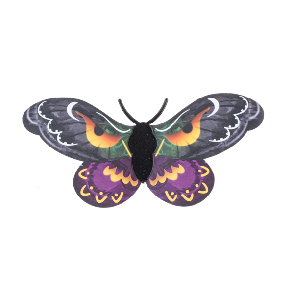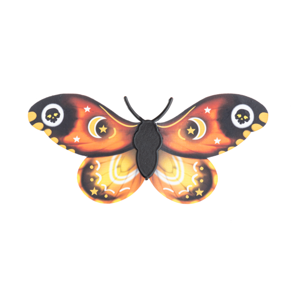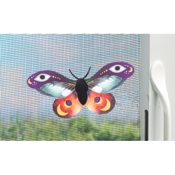 - Made of thin, lightweight metal and decoupaged papers, our beautiful moth designs can attach to your screen doors to help you see the screen more clearly. They can also perch on the outside of floral containers with their "feet" and create another layer and dimension in your garden. Choose from 3 designs, or mix and match them all, then it's up to you how you will use them-maybe you'll find another creative way! Each sold separately