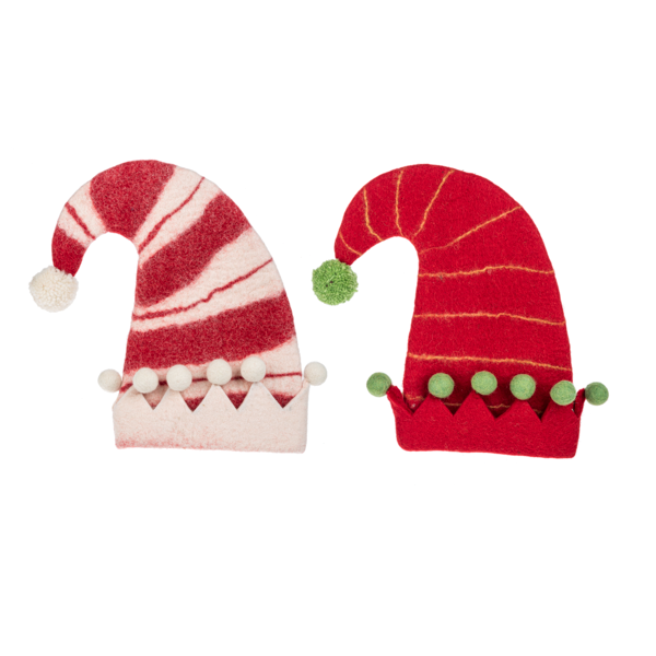 Decorative Wool Holiday Elf Hat, 2 Styles, sold separately