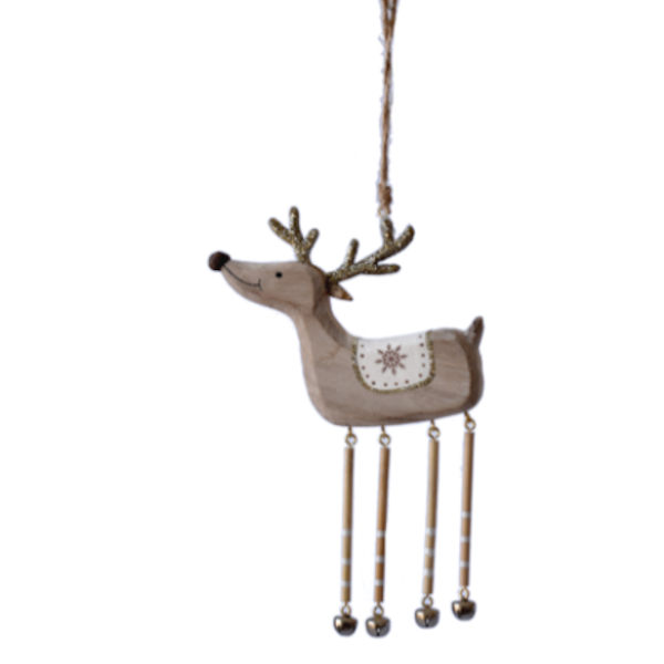 Material: Wood, Metal, Foam Antlers, Bell "hooves"