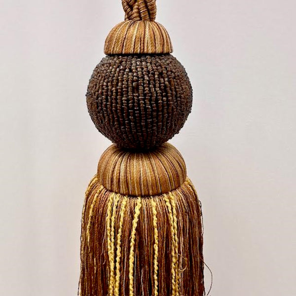 - Earthtone Mix features different shades and tones of golds and browns with different textures and weights of threads and dark brown seed beads