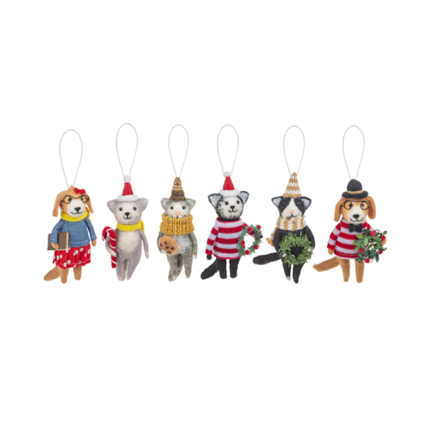 Dog and Cat Hipster Ornament, sold separately