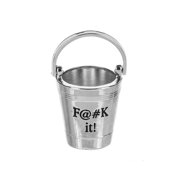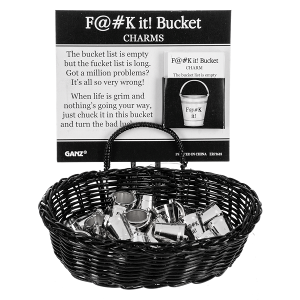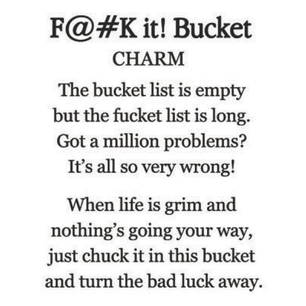 - The humorous F@#k it! Bucket Pocket Charm comes with a small card that reads "The bucket list is empty but the fucket list is long. Got a million problems? It's all so very wrong! When life is grim and nothings going your way, just chuck it in this bucket and turn the bad luck away."