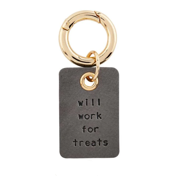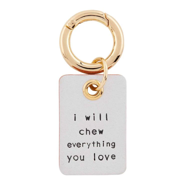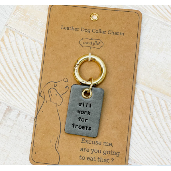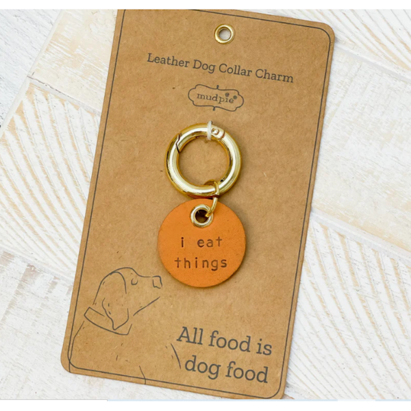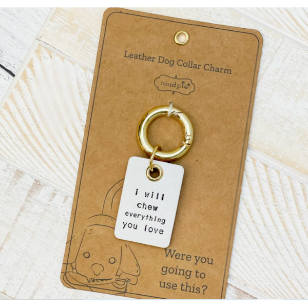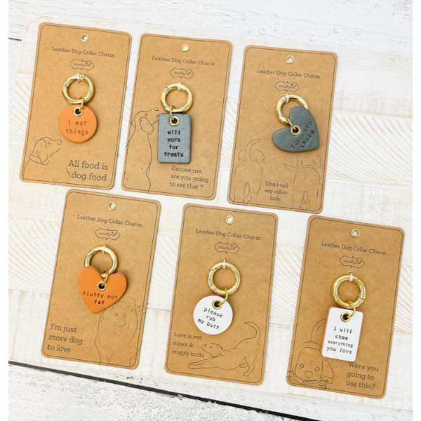 - Debossed sentiment genuine leather dog collar charm, arrives on humorous display card