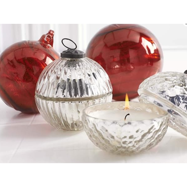 Filled Mercury Glass Lidded Ornament Candle-Assorted, sold seperately