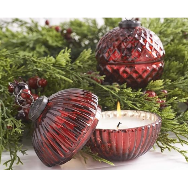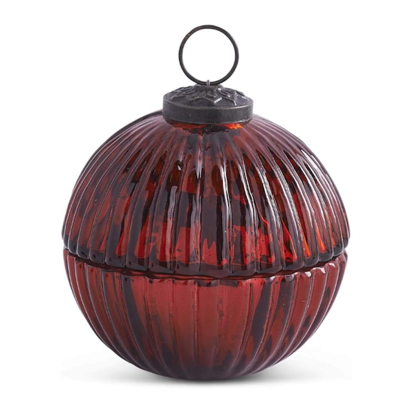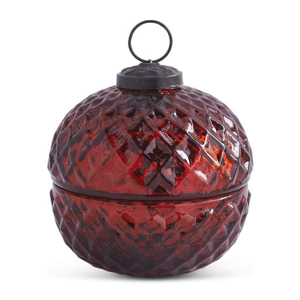Add a touch of elegance to your holiday decor with our Filled Mercury Glass Lidded Ornament Candle. Available in 3 colors and 2 fragrances ( "Winter Wood" or "Cranberry Spice"), these candles will create a warm and inviting ambiance. Choose from the two scents to enhance your holiday experience. Sold separately