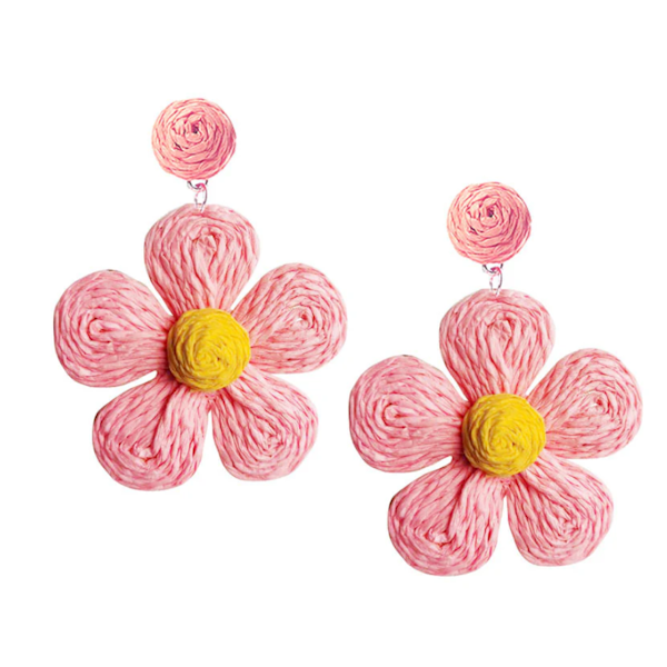 Add a pop of sunshine to your style with these playful Flower Raffia Earrings. Crafted from cheerful pink and yellow raffia, their lightweight design makes them perfect for all-day wear. The sturdy metal backing keeps each bloom perfectly shaped, so you can flaunt a fresh, fun look wherever you go.