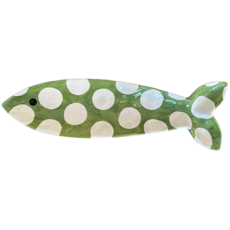 Green & White Polka-Dot Fish Serving Platter
