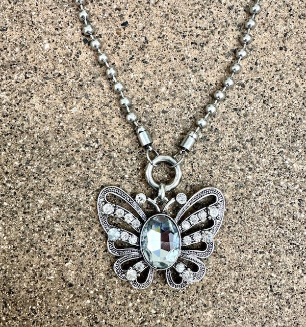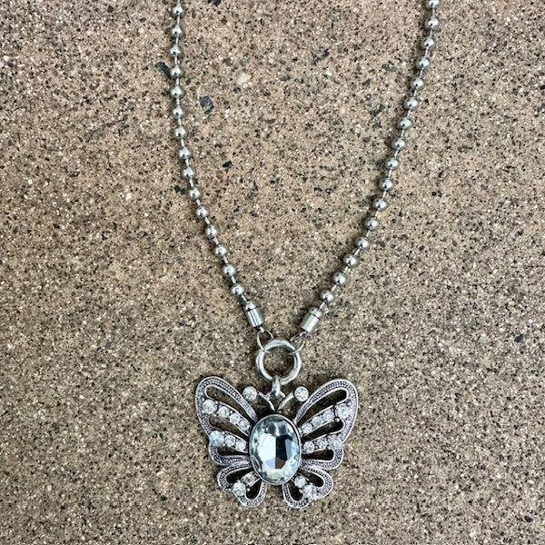- Decorative Butterfly Necklace, silver beaded chain with butterfly pendant
