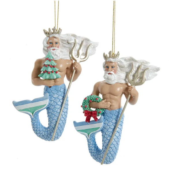 - These King Neptune ornaments from Kurt Adler are a whimsical addition to your holiday décor or Christmas tree. Each ornament in this assortment is featured holding either a glittered Christmas tree or a glittered Christmas wreath, each sold seperately.