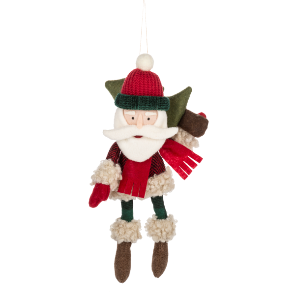 - Oh, if Santa were a Lumberjack, this is what he would look like! This soft, large ornament uses a combination of interesting wintery warm textiles in reds, greens, tans and browns. Santa even has a whole Christmas tree over his shoulder!