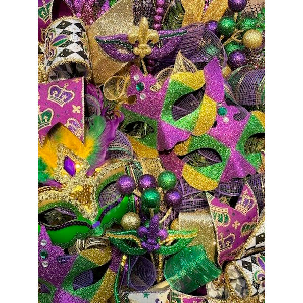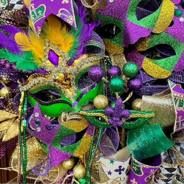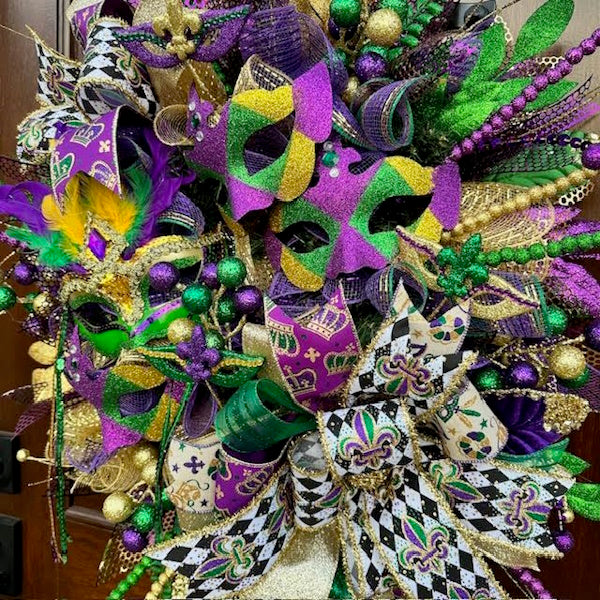 - "Let the Good Times Roll!" Celebrate Mardi Gras season with this large wreath on your front door, it's stuffed full of all the fun and festivities to get you in the mood to party New Orleans style!
