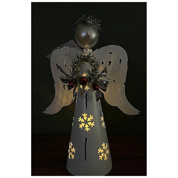 Farmhouse Distressed Metal Light-Up Angel