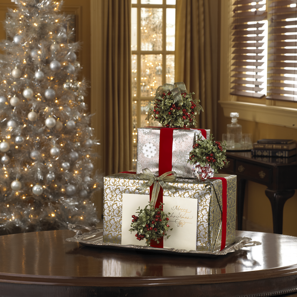 Material: Acrylic, Plastic Mistletoe Greenery w/Classic Red Berries, 3" White Organza Ribbon Hangar