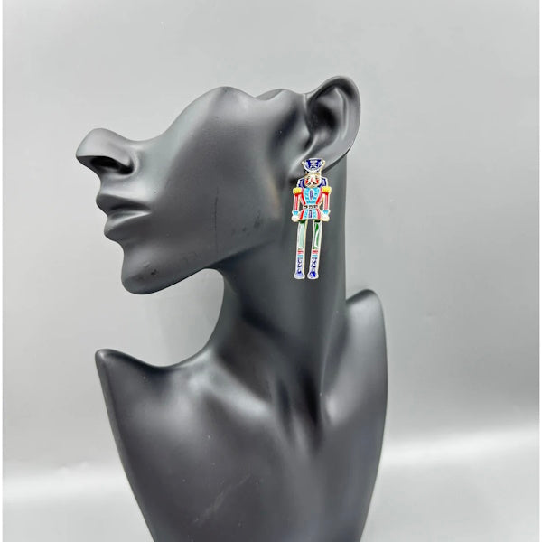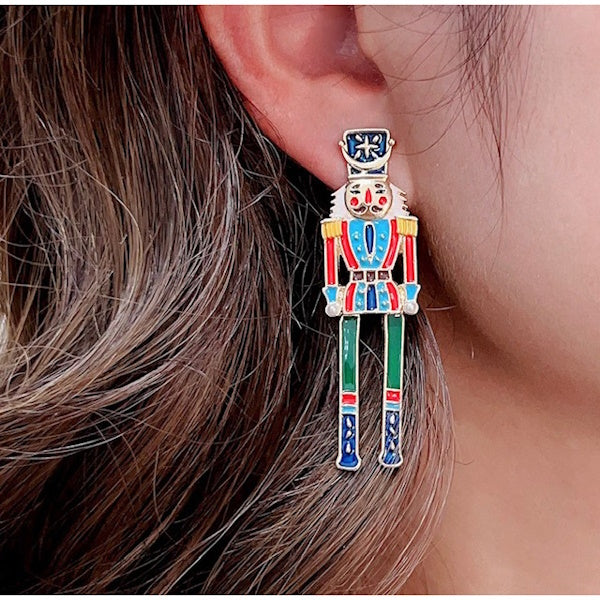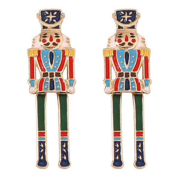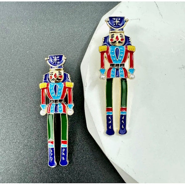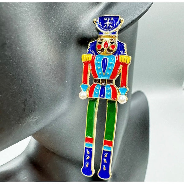 Add a touch of holiday cheer with these playful Nutcracker Soldier Earrings. Featuring vibrant multicolored enamel, sparkling rhinestones, and charming faux pearls, they bring festive fun to any outfit. Perfect for spreading joyful vibes all season long!