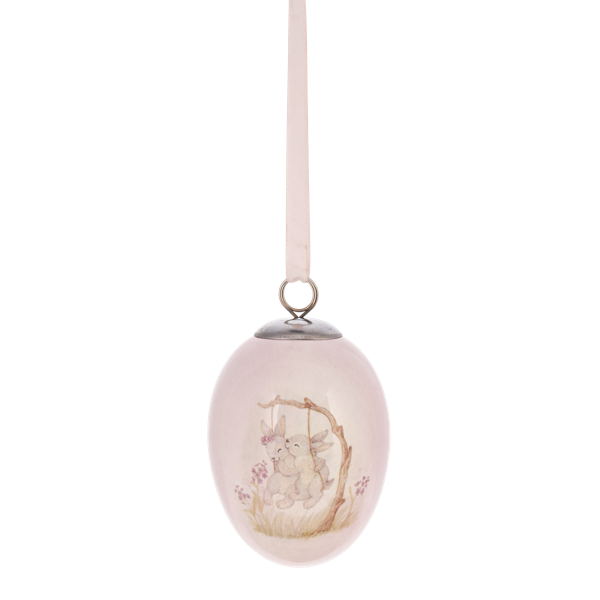 - Decorative pastel colored Easter Egg ornaments, with a Playful Bunny design adorn these cuties! Choose from a pretty pink, yellowy-green, or a soft bashful blue dolomite (durable material, similar to ceramic) egg with a matching satin ribbon hanger, each sold seperately