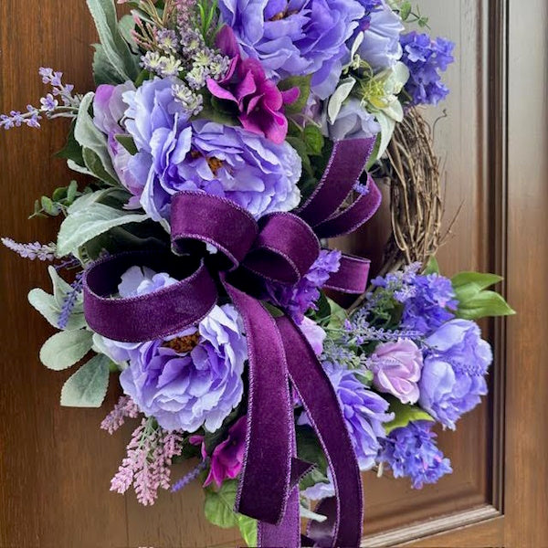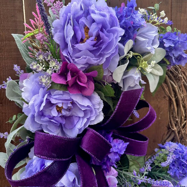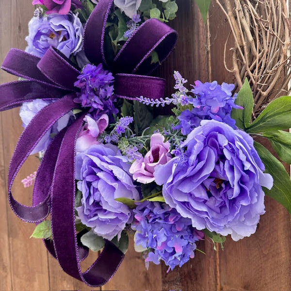 - Handmade Custom Purple Grapevine Wreath, perfect for welcoming your guests in through your front door around springtime, Mother's Day, or anyday for anyone who loves purple!