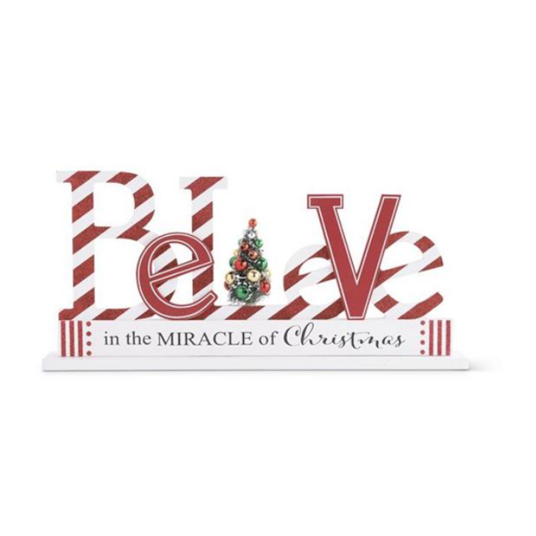 - BELIEVE - 13.75"W x 6.25"H x 1.75"D ("Believe in the MIRACLE of Christmas")