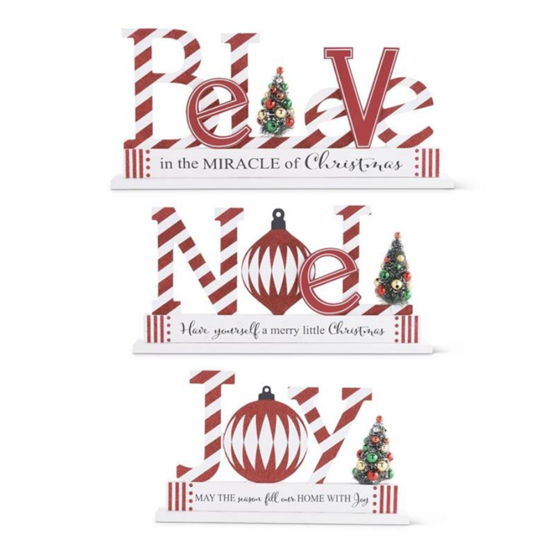 Red & White Cutout Tabletop Sign w/Bottle Brush Tree, 3 Styles-sold separately