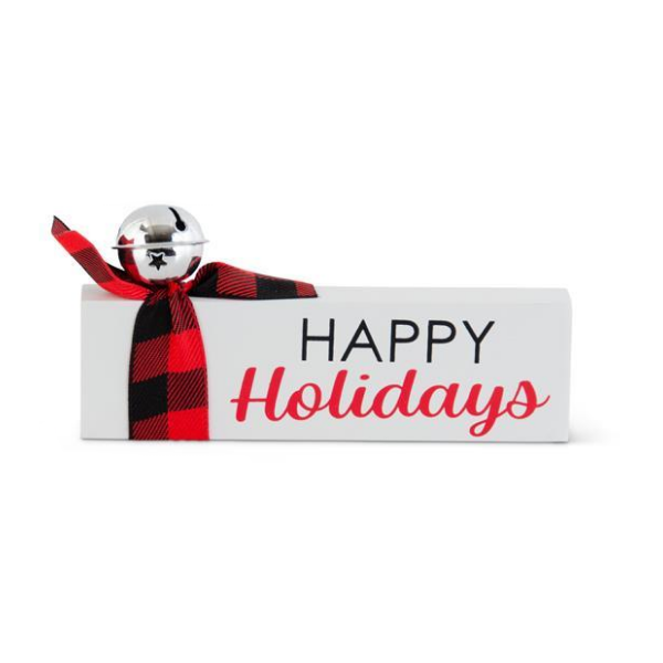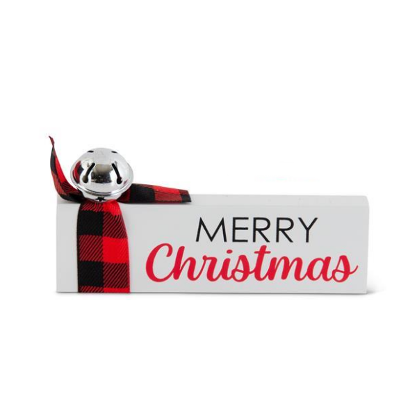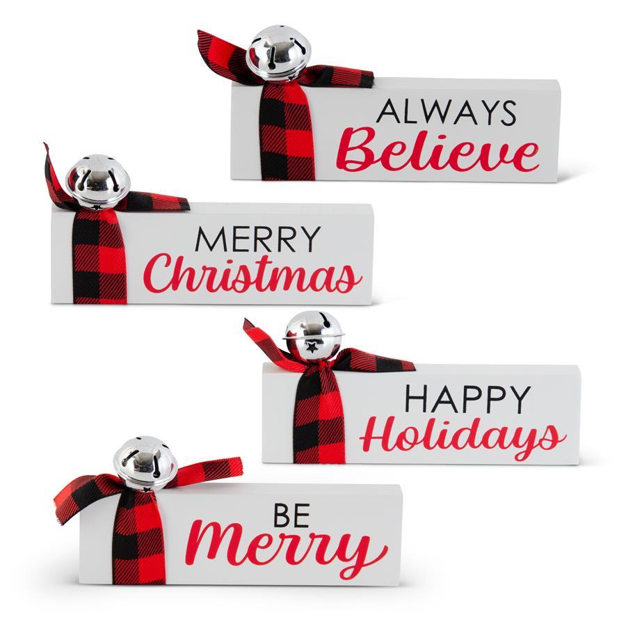 Red & White Wood Holiday Sign w/Bell, sold separately