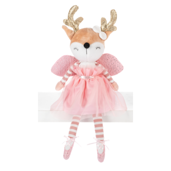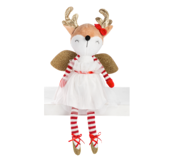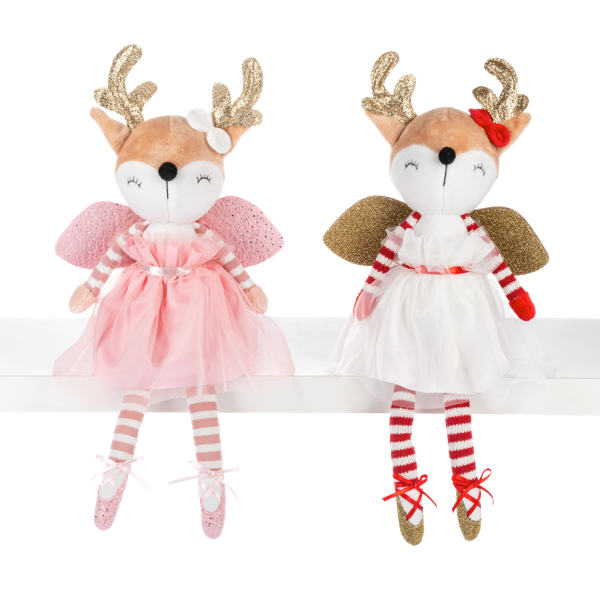 - Meet our whimsical Reindeer Fairy Shelfsitters...What is a Shelfsitter, you ask? Well, there is sand in their seats to "weight" them down so they sit nicely on a shelf, and their legs dangle loosely over the edge. We have two colors to choose from, pink and white, or red and white (Sorry, red and white-SOLD OUT, but the pink and white is adorable!)
